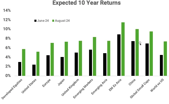From a valuation perspective, the recent market pullback has made forward-looking returns look more reasonable, especially in oversold markets like Japan. For long-term investors, the margin of safety has improved compared to six weeks ago (as witnessed by the recent uptick in long-term expected returns implied by our recently updated Valuation Dashboard – see chart below). Overall, while concerning, the dramatic moves in early August seem to be driven more by technical factors unwinding previously stretched positioning rather than a fundamental shift in economic trajectory. A steady outlook seems warranted for now, but the situation remains fluid.