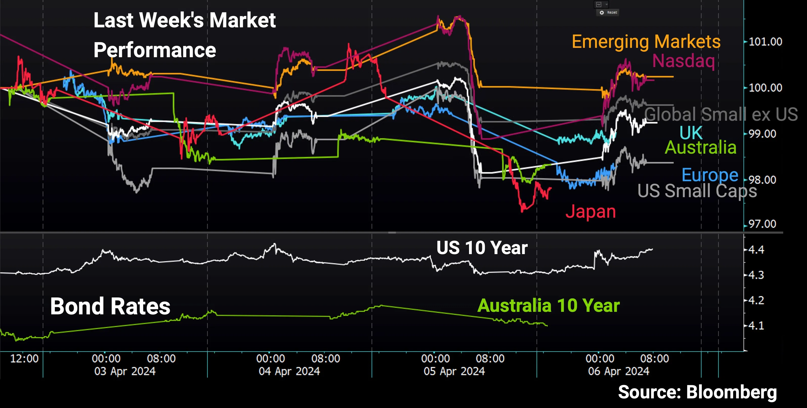 The first week of April 2024 saw a shortened trading period due to the Easter weekend, but that didn't prevent markets from experiencing volatility as investors grappled with competing views on the state of the global economy and the trajectory of interest rates.