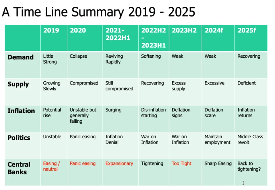 This week he has gone a step further and outlined a possible month by month (!) timeline for markets in 2024.